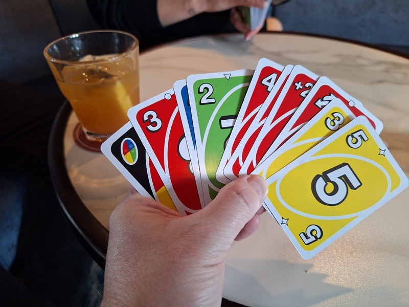 I immediately veered towards a trio at a table where one of them was shuffling Uno cards.