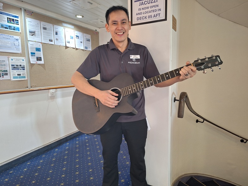 Not only was Pablo, the resident musician, playing but we were also going to be treated to a crew band made up of 5 of the Filipinos working on board including my room attendant Angel and my regular server Francis.