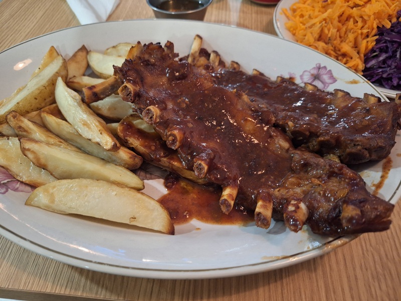 Anyway, long story short, I wolfed down the ribs and left behind the fries and coleslaw.