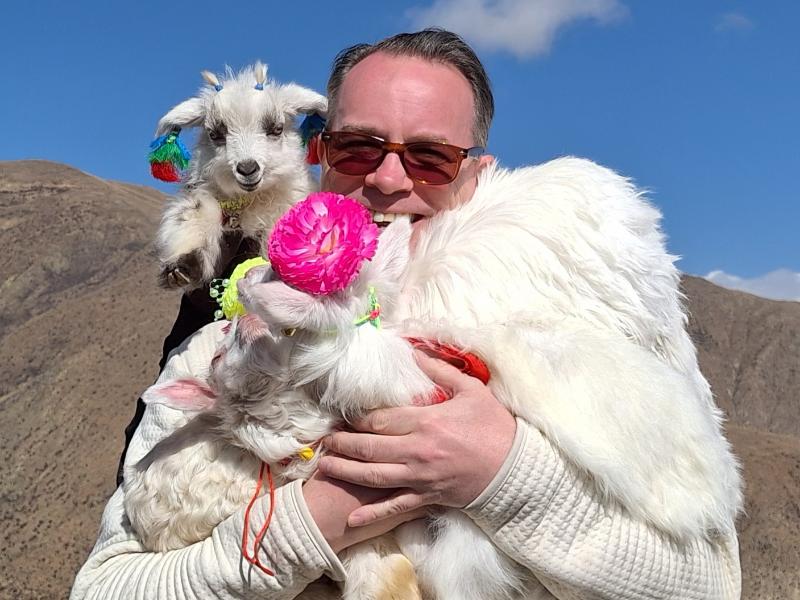I accepted the offer of one persistent lady to take a photo with her baby goat.