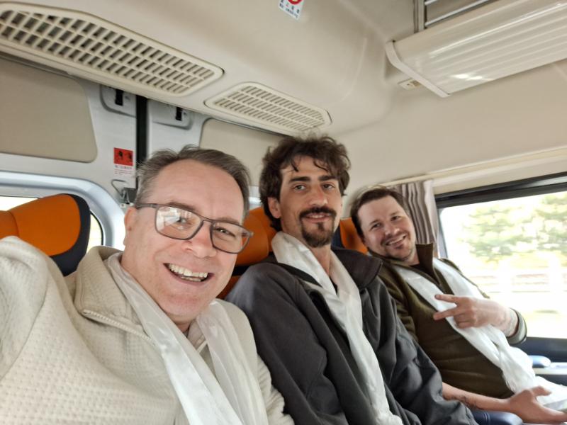 At 4pm we headed outside, presented with welcome silk scarves, and boarded our shuttle van.
